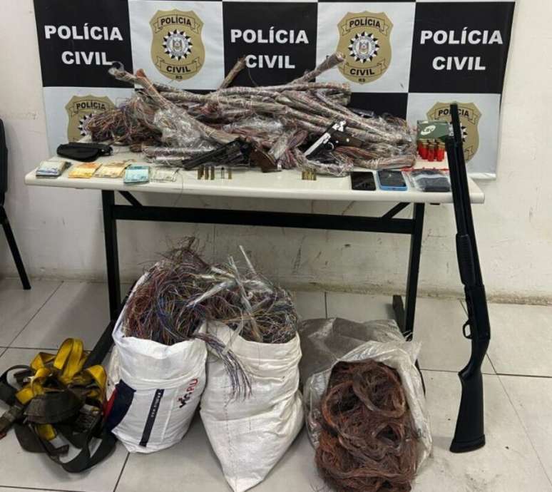 Segundo o Delegado Luís Antônio Reis Firmino, foram apreendidos mais de 71 quilos de cabos de cobre, uma espingarda calibre 12 de fabricação argentina, um revólver calibre 38 e cartuchos de munição calibres 12, 38 e 9mm, além de telefones celulares dos suspeitos.