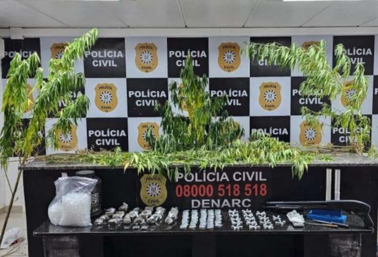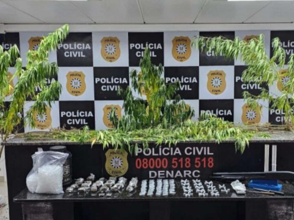 Operação no bairro Sarandi resulta em apreensão de plantas de maconha, cocaína, espingarda e materiais para tráfico de drogas.