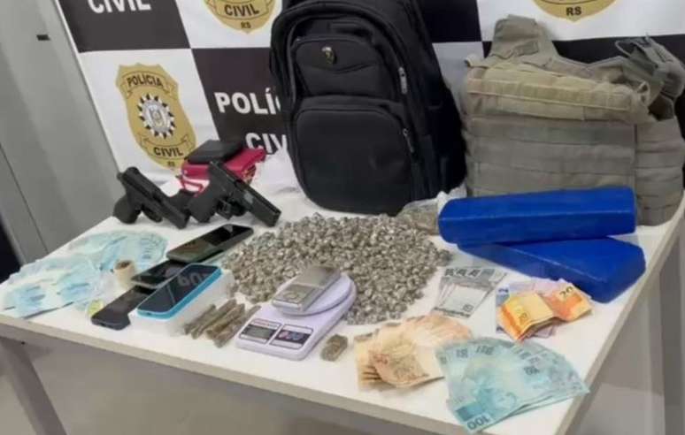 Entre os materiais apreendidos estão 410 porções de maconha, dois tijolos da mesma droga e porções de ecstasy. Também foram recolhidas embalagens para fracionamento de drogas, duas balanças de precisão e uma capa de colete balístico, itens que serão analisados no andamento do inquérito policial.