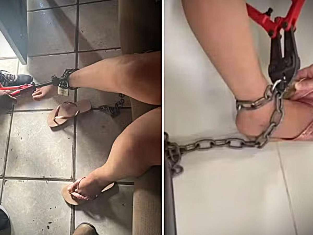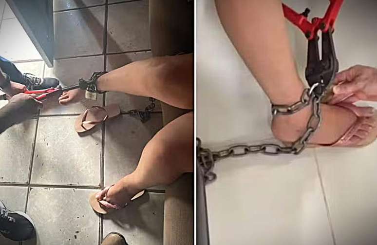 De acordo com a polícia, foi necessário arrombar o cadeado para libertar a mulher. Ela apresentava hematomas pelo corpo, o que levou ao enquadramento da ocorrência como violência doméstica, além de cárcere privado e lesão corporal.