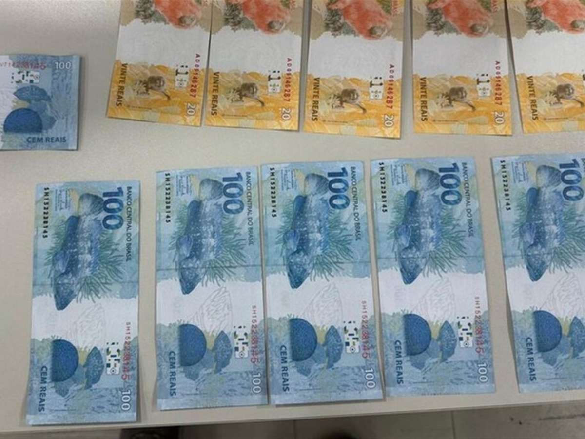 Dentro do pacote, foram localizadas notas falsas de R$ 100, R$ 20 e R$ 10. Conforme informado pela PF, a quantidade exata de cédulas e o valor total apreendido ainda serão detalhados após a conclusão da perícia técnica.