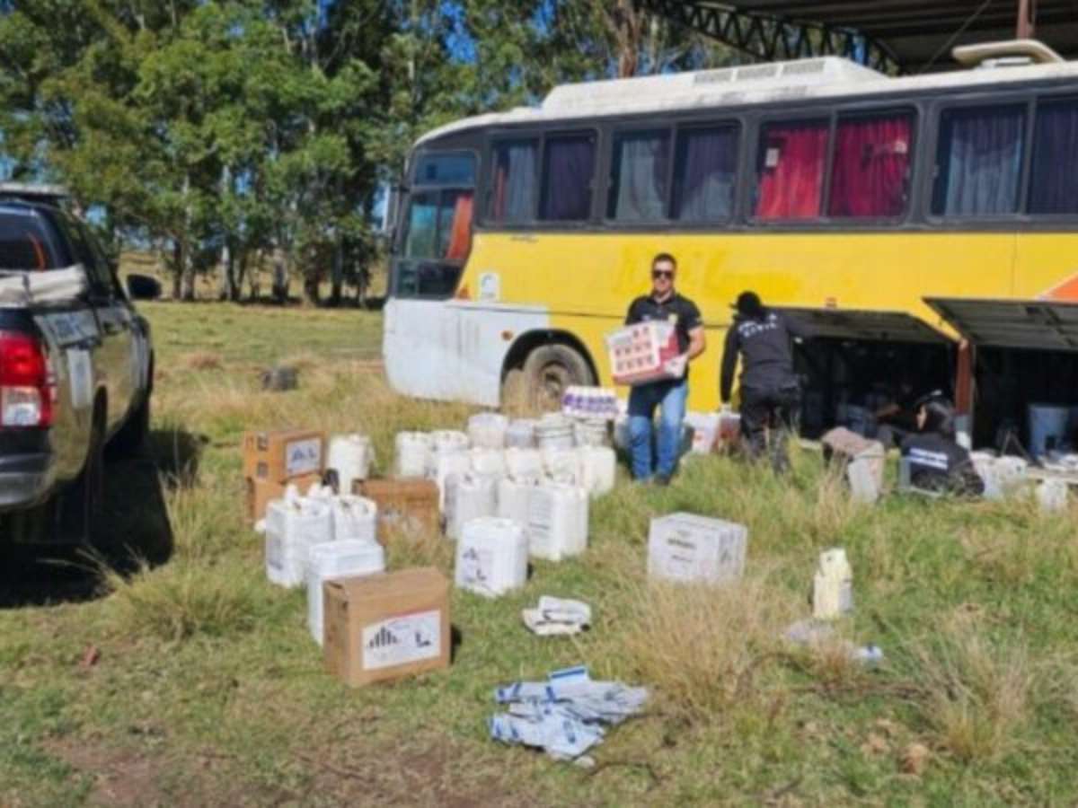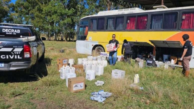 Com mandados judiciais, os agentes revistaram propriedades onde encontraram uma grande quantidade de defensivos agrícolas furtados, armazenados em condições irregulares. Um ônibus sem documentação servia como esconderijo para os produtos. Também foram apreendidos um caminhão com embalagens vazias, três armas de fogo e um graneleiro avaliado em R$ 50 mil, identificado como furtado em 2024.
