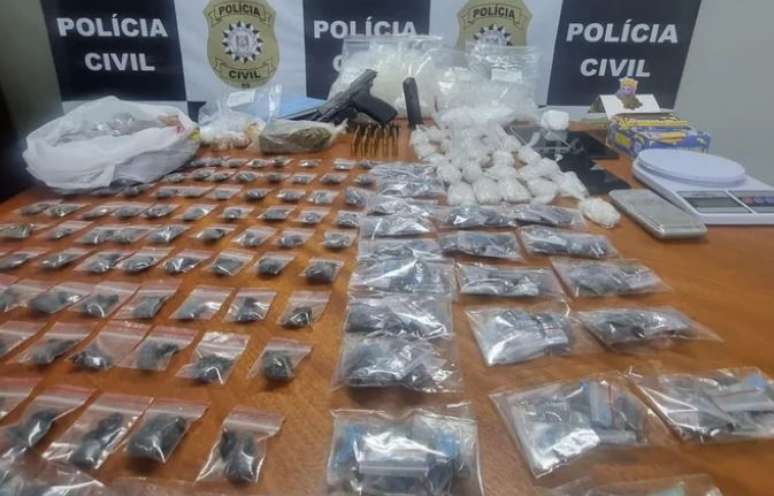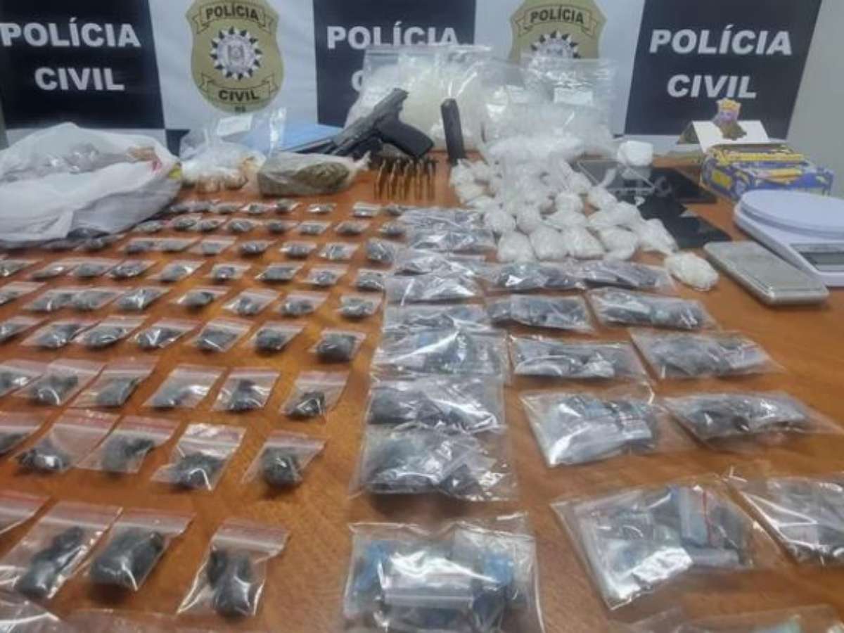 De acordo com o delegado Gabriel Borges, foram apreendidos 529 gramas de cocaína, 612 gramas de crack e 371 gramas de maconha. A polícia também localizou uma pistola, carregadores, munições, materiais para embalo dos entorpecentes e dinheiro em espécie.