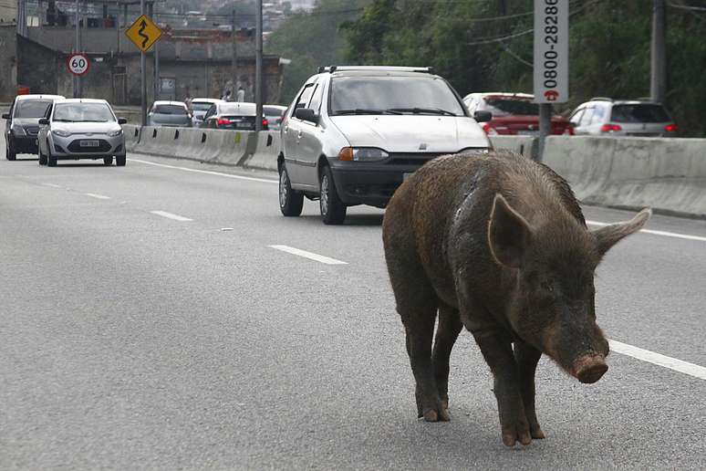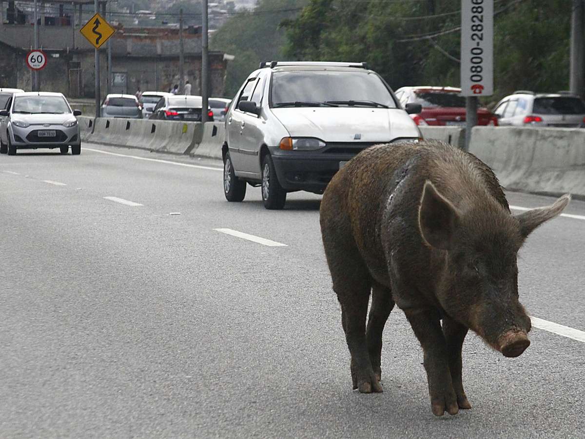 Fotógrafo da agência Futura Press flagrou um porco andando pela auto-estrada Serra do Grajaú-Jacarepaguá, no Rio de Janeiro na manhã desta quarta-feira