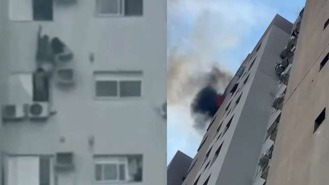PR: mulher se pendura sobre caixa de ar-condicionado no 13º andar para salvar mãe e sobrinha de incêndio