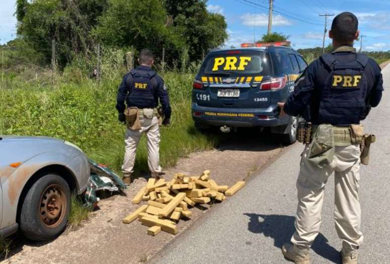 Na tarde deste sábado (7), a Polícia Rodoviária Federal (PRF) realizou uma operação de combate ao crime em Bagé, na Fronteira Oeste do Estado, que resultou na apreensão de 50 quilos de maconha. Após uma perseguição que se iniciou na BR-293 e se estendeu até a RS-473, o motorista de um Focus com placas de Cruz Alta abandonou o veículo e fugiu para o mato.