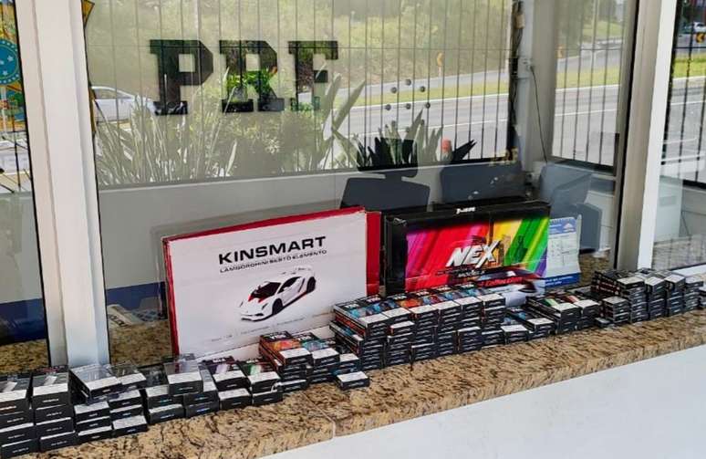De acordo com a PRF, a importação e a comercialização de cigarros eletrônicos são proibidas no Brasil, conforme normas da Agência Nacional de Vigilância Sanitária (Anvisa), o que caracteriza crime de contrabando. A mercadoria apreendida está avaliada em cerca de R$ 14 mil.