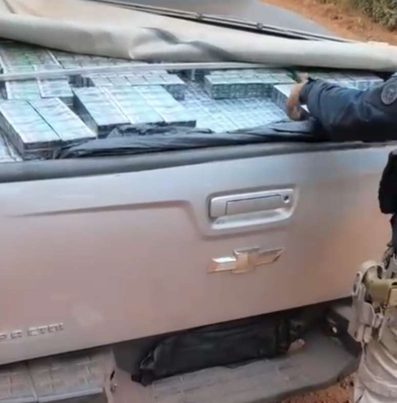 Na verificação da caminhonete, os policiais encontraram diversas caixas de cigarros na caçamba, somando 22.500 maços de origem estrangeira. Tanto a mercadoria apreendida quanto o veículo foram encaminhados à polícia judiciária em São Borja.