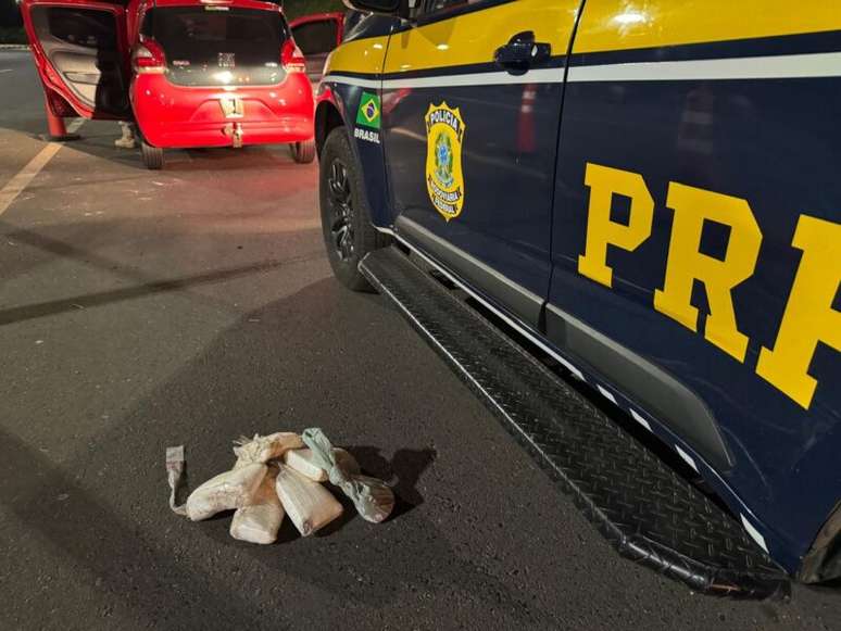 Em operação de combate ao crime, os policiais rodoviários federais deram ordem de parada ao motorista de um Mobi com placas de Novo Hamburgo, com 2 ocupantes. Durante a fiscalização, os policiais encontraram no banco traseiro uma bolsa com vários tabletes de cocaína, totalizando 4,8 quilos, além de 300 comprimidos de ecstasy.