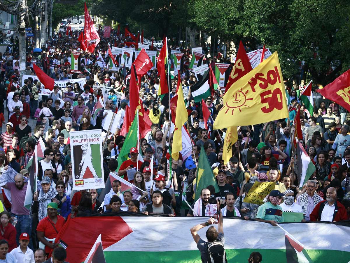 Manifestantes pró-palestina realizaram uma manifestação na zona sul da capital paulista nesta tarde. De acordo com a Polícia Militar, mais de duas mil pessoas estiveram em frente ao consulado de Israel, localizado na rua James Joule, uma travessa da avenida Engenheiro Luís Carlos Berrini.