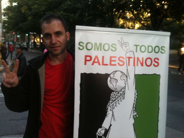O professor de história e geografia, André Mendonça, 38, era um dos manifestantes. Ele ficou sabendo do protesto via rede social e decidiu participar. "(Os ataques) são um absurdo, porque os palestinos são um povo indefeso, que não tem exército. É uma força desproporcional contra quem não tem nem como se defender", disse.