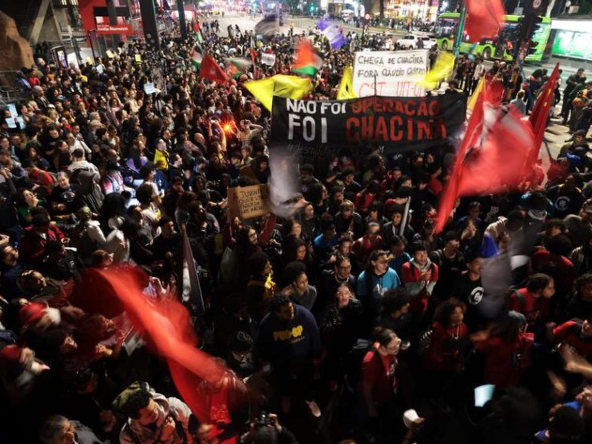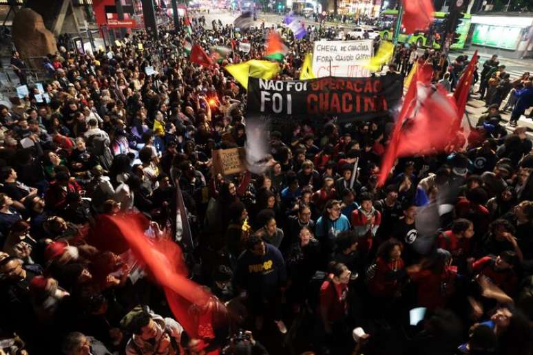 Um grupo de manifestantes se reuniu no início da noite desta sexta-feira, 31, na Avenida Paulista, em frente ao Museu de Arte de São Paulo Assis Chateaubriand (Masp), para protestar contra a megaoperação do início da semana nos complexos da Penha e do Alemão, no Rio de Janeiro. A ação policial tinha como alvos lideranças do Comando Vermelho (CV) e deixou 121 mortos (sendo quatro policiais), se tornando a mais letal da história do Estado.