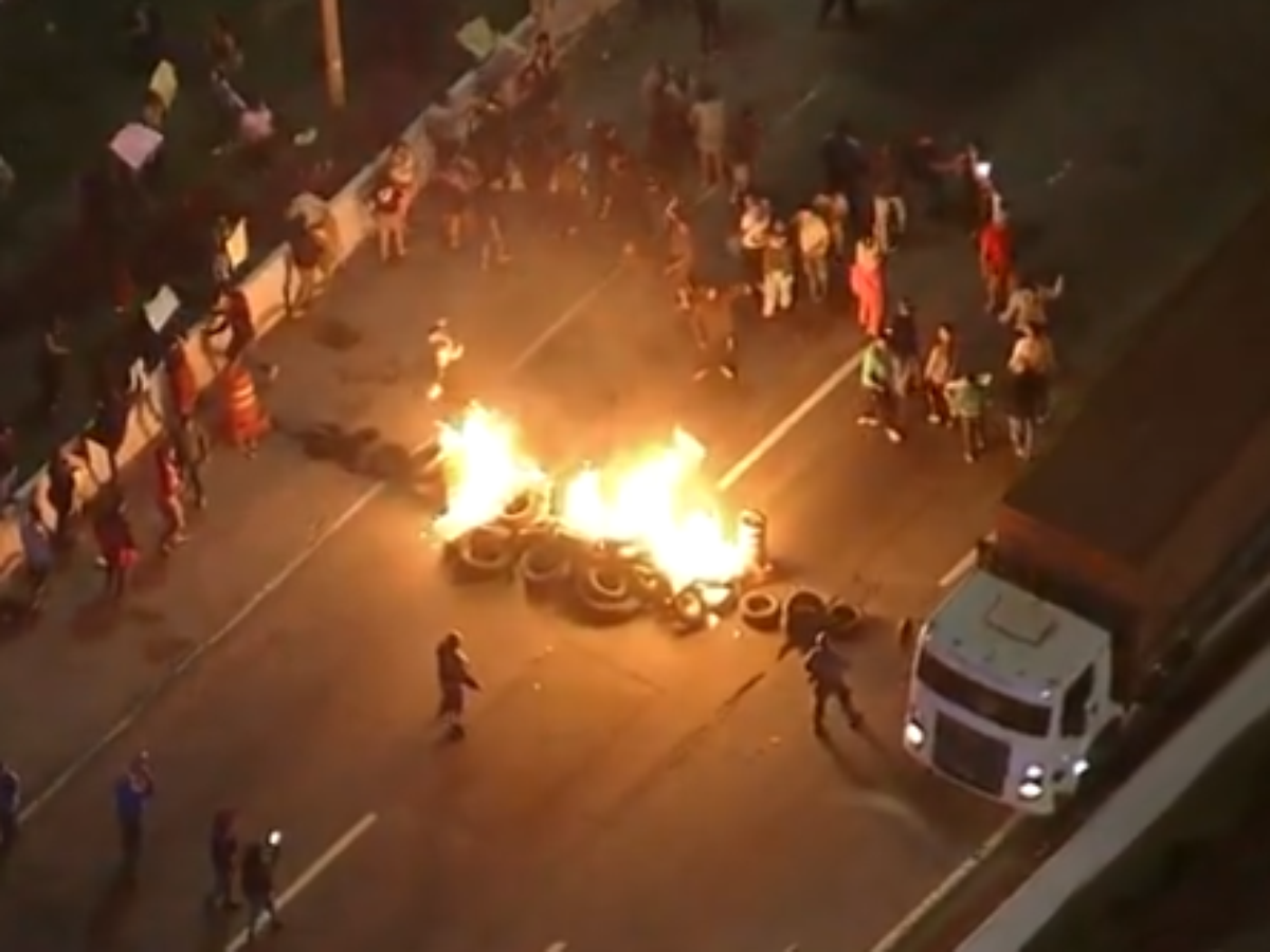 Protesto de cerca de 100 manifestantes contra reintegração de posse na Marginal Pinheiros, em São Paulo, interditou a via com barricadas em chamas e afetou a operação das Linhas 8 e 9 da ViaMobilidade.