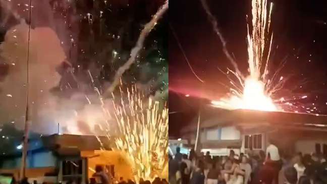 Vídeos que circulam nas redes sociais mostram os fogos explodindo em cima do telhado de um imóvel em frente à Praça Municipal Guido Giazomazzi, onde era o evento, e indo em direção ao público. Além das pessoas, veículos foram atingidos pelos fogos. Veja: