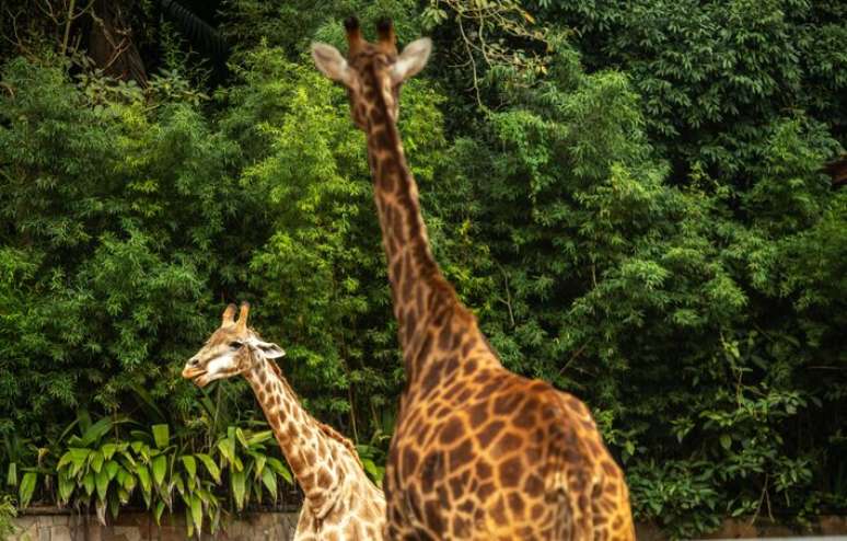Segundo o zoológico, o filhote é um macho e nasceu saudável, com dois metros de altura. Ele é filho do casal Mel e Palito, que vive há 17 anos no espaço.