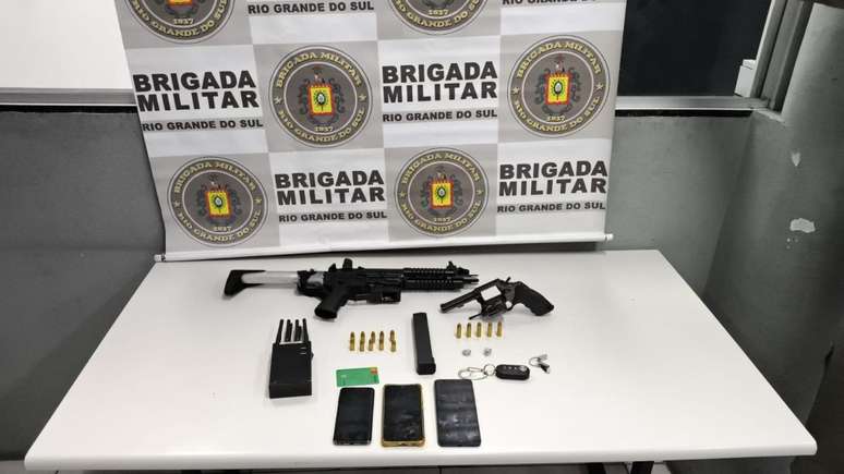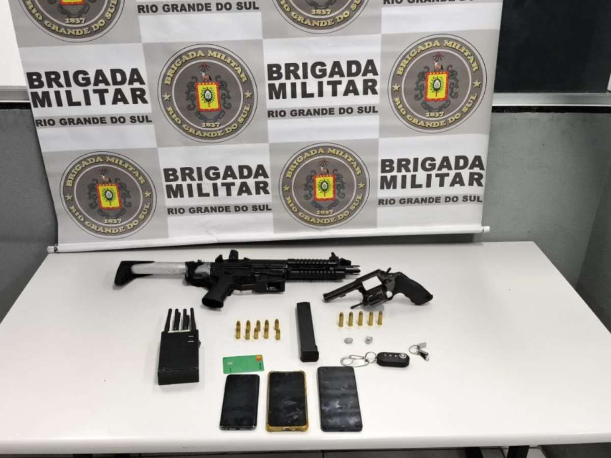 No interior do veículo, foram encontrados uma submetralhadora calibre 9 milímetros, um revólver calibre .38 com a numeração suprimida, munições de ambos os calibres, entorpecentes, um rádio bloqueador de sinal e aparelhos celulares.