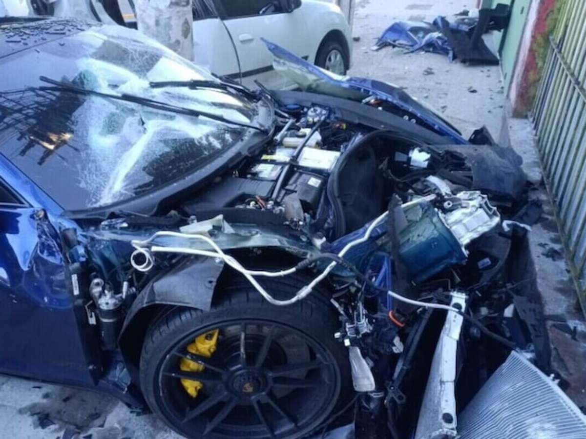 Por causa da gravidade da colisão, a traseira do Renault Sandero ficou completamente destruída, assim como a dianteira do Porsche. A investigação busca câmeras de segurança que podem ter gravado a batida para analisá-las.