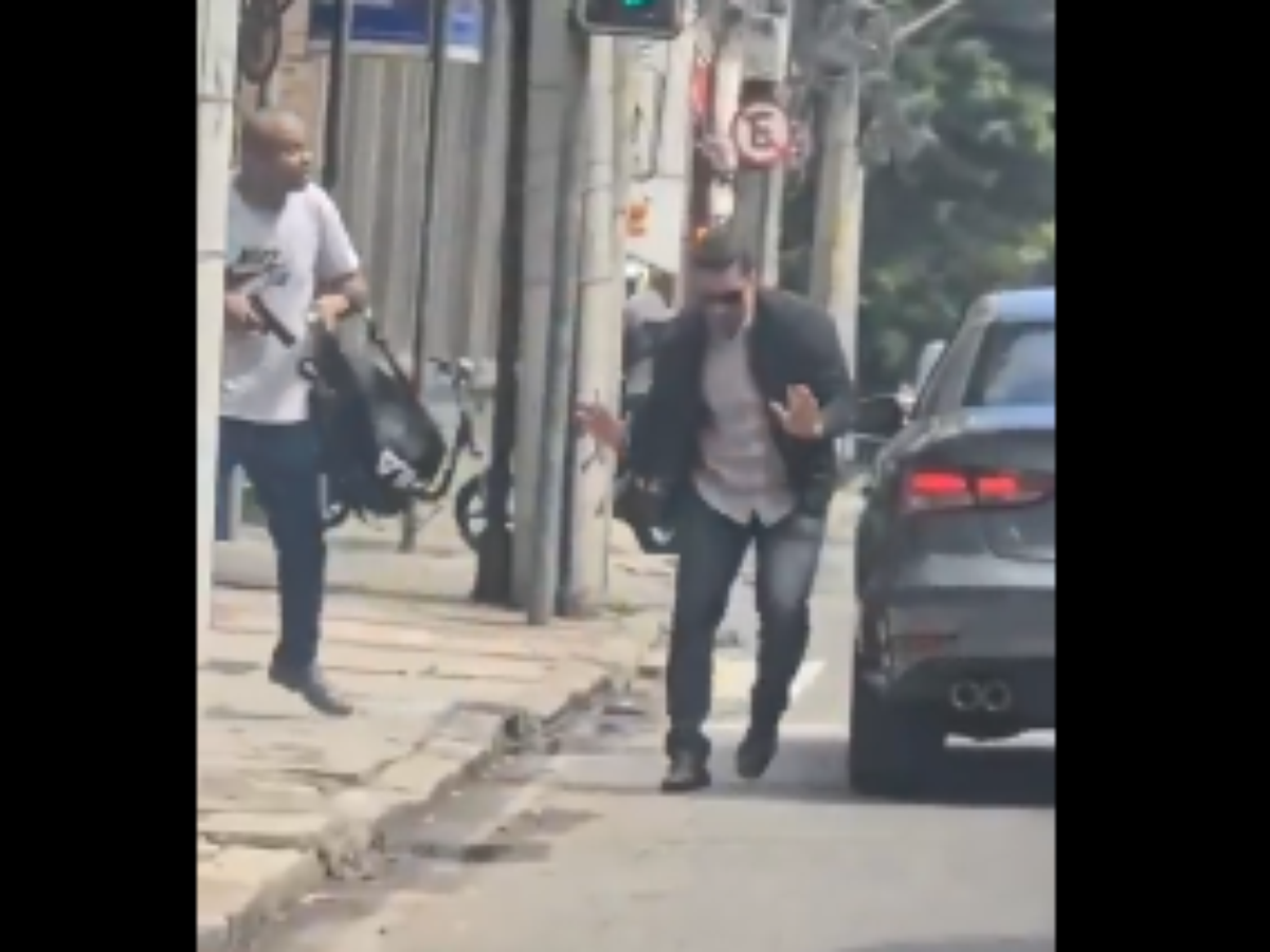Na rede social, circulam imagens do momento do ocorrido. Um homem gravou o momento em que o policial federal finge se render ao suspeito, vira de costas com as mãos para cima e, sem o suspeito ver, saca uma arma.