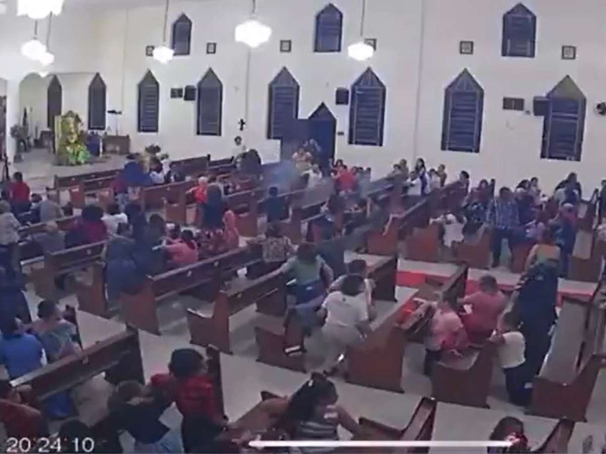 Imagens das câmeras de segurança registraram o momento do estouro. No momento da explosão, ocorria uma missa, o que causou alvoroço entre os fiéis presentes no local.