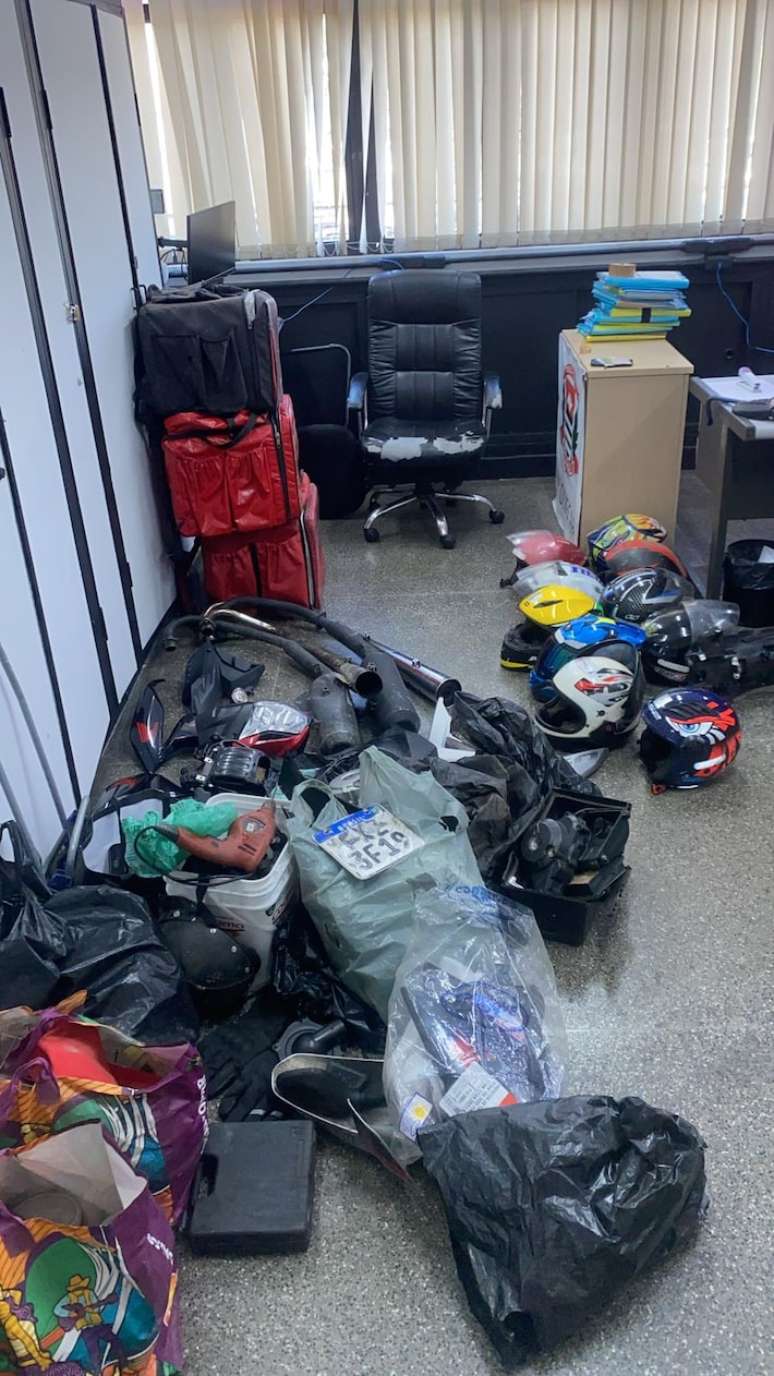 No local, as equipes também recolheram motocicletas, capacetes, acessórios e peças. "Os materiais estavam nos imóveis utilizados pelos detidos", acrescentou o Deic.