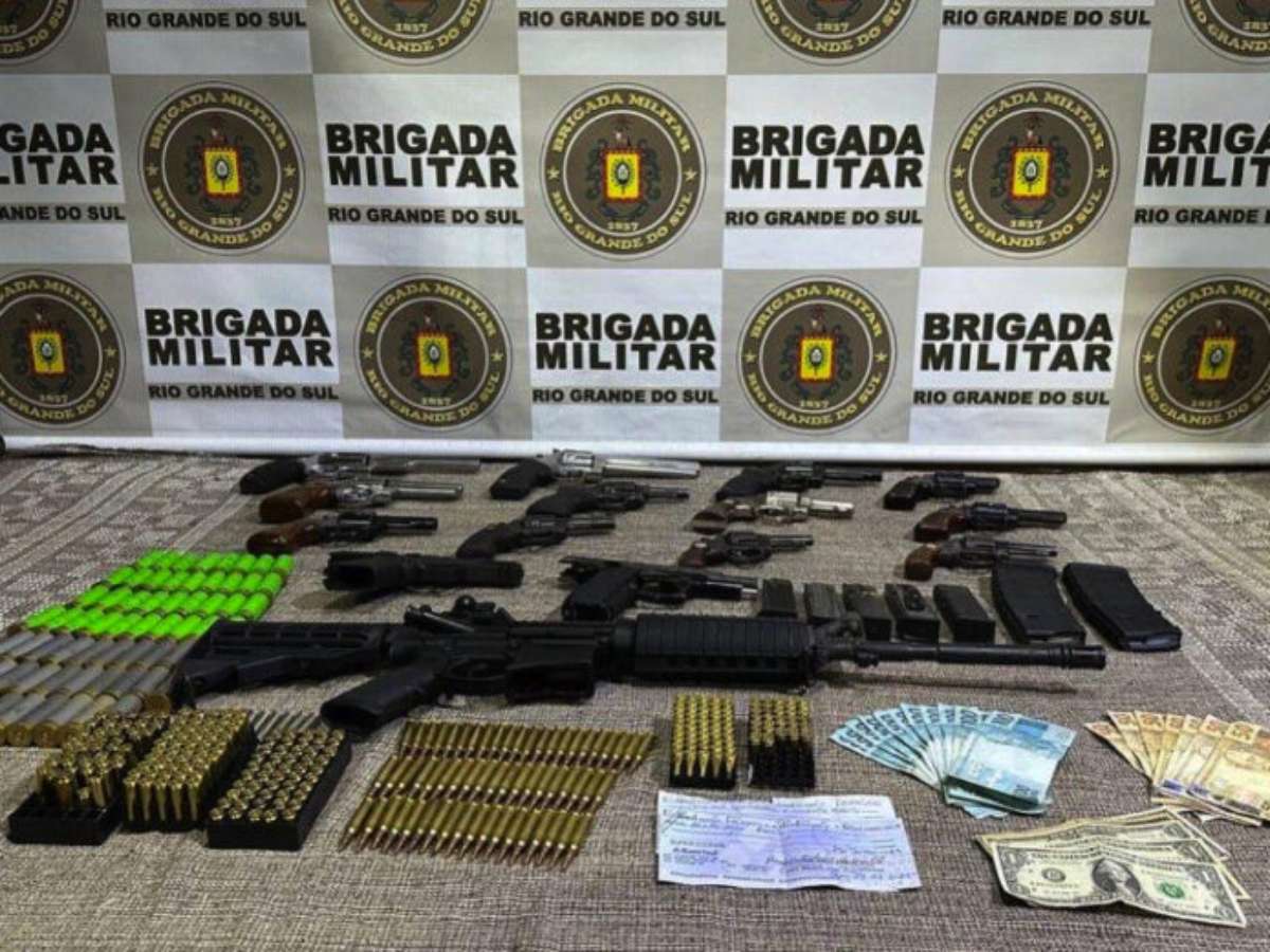 Em uma operação conduzida pela Brigada Militar na cidade de Charqueadas, localizada na Região Carbonífera, dois indivíduos foram presos e 15 armas de fogo foram apreendidas no último sábado (3). Entre as armas encontradas, havia 14 armas curtas de diferentes calibres, além de um fuzil calibre .556. Além disso, foram encontradas munições e cheques no valor total de R$32.590.