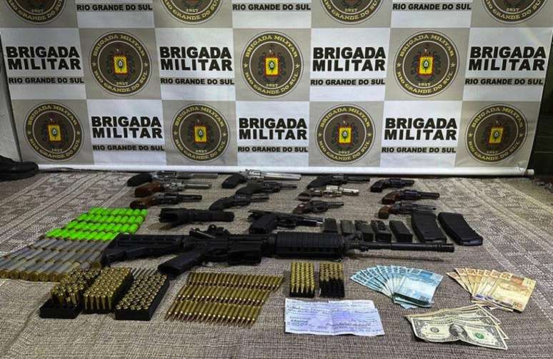 Entre as armas encontradas, havia 14 armas curtas de diferentes calibres, além de um fuzil calibre .556. Além disso, foram encontradas munições e cheques no valor total de R$32.590.