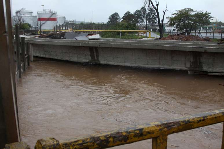 25 de agosto - Água de arroio localizado na divisa entre Esteio e Canoas (RS), na região metropolitana, está quase alcançando a ponte das obras da avenida Beira Arroio