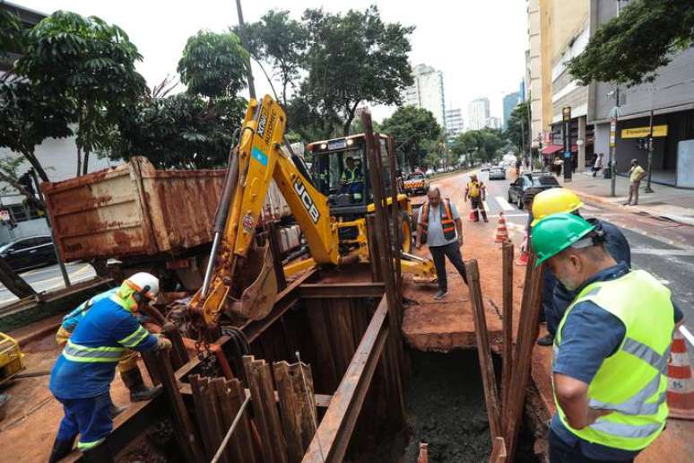 "A Sabesp informa que está trabalhando no reparo da rede de distribuição de água no local. O serviço foi iniciado ontem, 5, às 20h e se estenderá ao longo do dia de hoje. O abastecimento de água na região não está prejudicado. A Sabesp pede desculpas pelos transtornos e segue à disposição pelos canais de atendimento ao cliente pelo telefone 0800-055-0195 (ligações gratuitas) ou também pela Agência Virtual", diz a Companhia de Saneamento Básico do Estado de São Paulo (Sabesp).