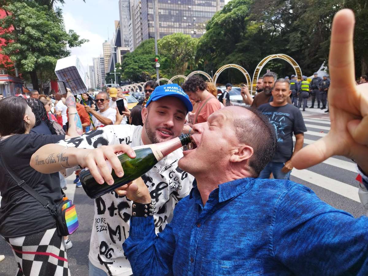 Samba, champanhe e boneco inflável: ato em SP celebra prisão preventiva de Bolsonaro