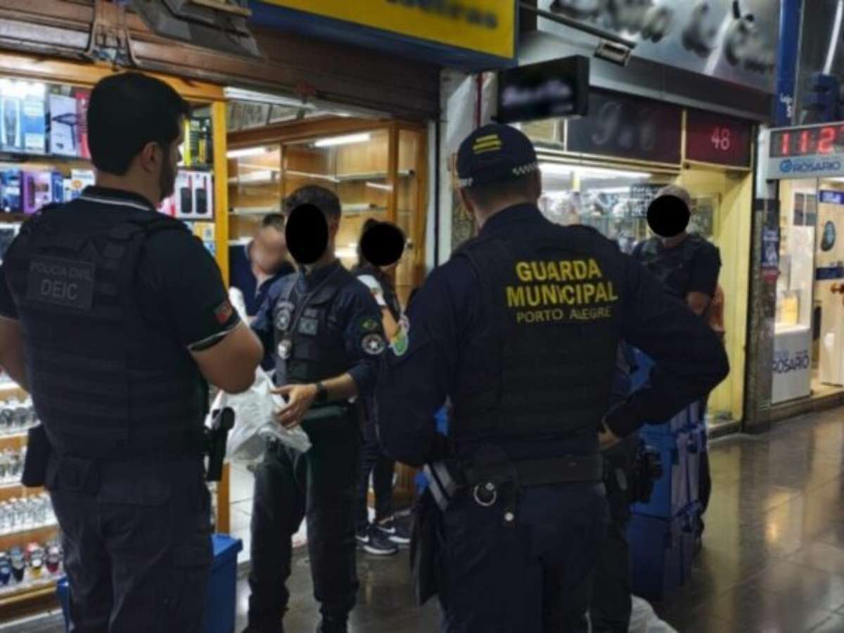 Mais de 30 policiais civis, em ação integrada com 36 servidores da Receita Federal e 30 guardas municipais, realizaram as fiscalizações em nove estabelecimentos comerciais em Porto Alegre, com o objetivo de apurar notícias-crime de venda de mercadorias proibidas, falsificadas ou irregulares no local.