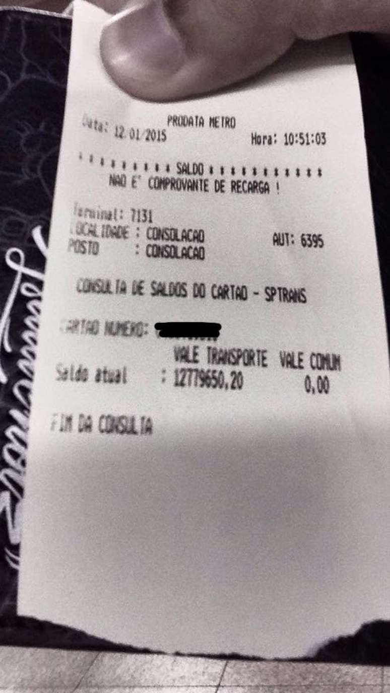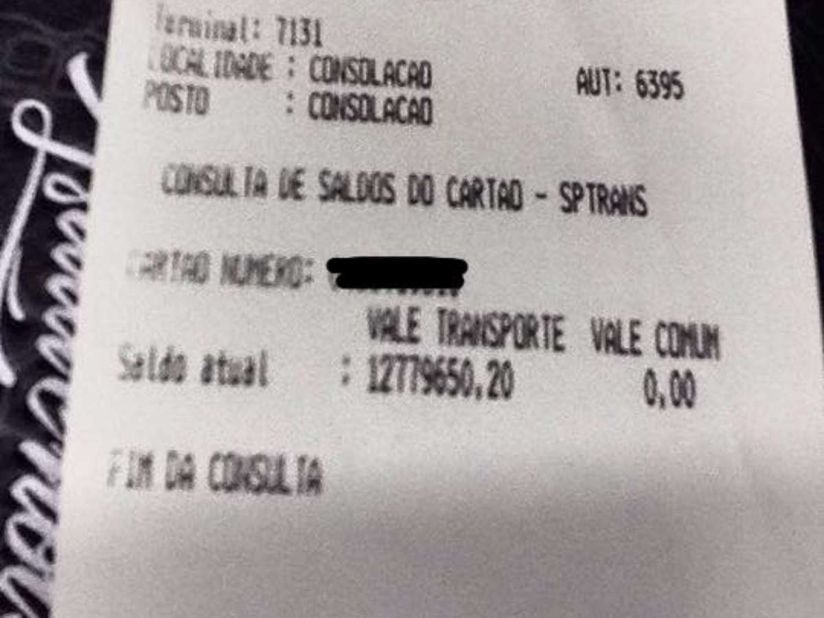 Após perceber o saldo, ele se dirigiu a uma cabine de atendimento e foi recomendado a comparecer a um posto da SPTrans, já que seu bilhete estaria com problemas. “Existe lugar MAIS INGRATO para 12 milhões de reais caírem do céu do que num Bilhete Único? Seria essa a versão pobre de ser rico? Um bilhete único com saldo ilimitado? “, brincou.