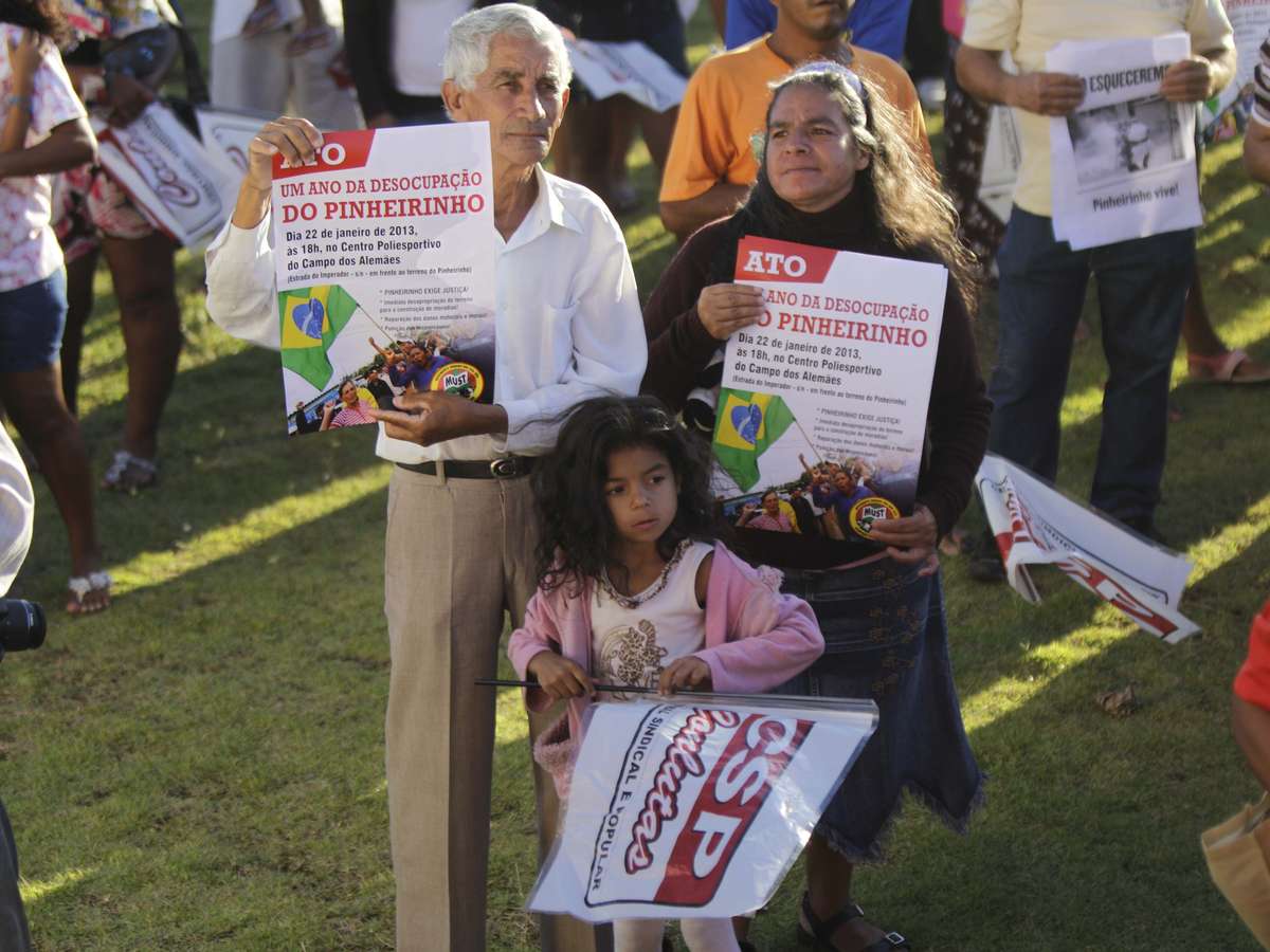 Os ex-moradores do Pinheirinho fizeram nesta quarta-feira, em São José dos Campos (SP), um ato lembrando os dois anos da reintegração de posse que deu fim à ocupação que abrigava cerca de 1,7 mil famílias. A manifestação aconteceu ao lado dos terrenos onde serão construídos conjuntos habitacionais para as pessoas despejadas. Além de pedir agilidade na entrega das moradias, os antigos ocupantes querem reparação pelas agressões sofridas na ação policial.