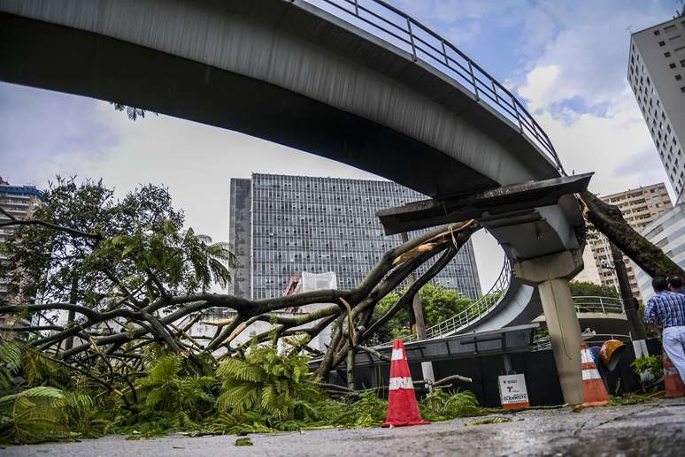 SP: forte chuva derruba árvore de grande porte em terminal