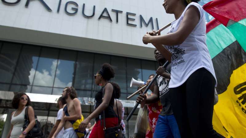 Outra faixa do evento, escrita em inglês, dizia que “No País da Copa do Mundo, shoppings racistas proíbem a entradas de pessoas negras e pobres”. Com gritos de guerra, que em nada lembram os “rolezinhos” registrados na periferia da capital, os jovens criticam o posicionamento do estabelecimento comercial: “chega de Apartheid, é ‘rolezinho’ nos shoppings da cidade”.