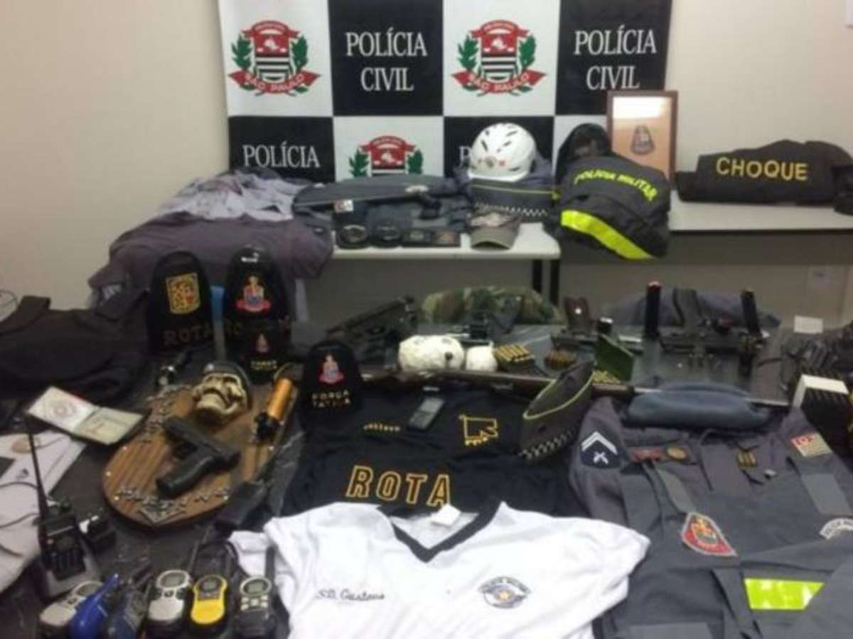 Foram encontradas também três pistolas, uma espingarda e caixas de munições de uso exclusivo da corporação. Alguns acessórios tinham identificação da Rota, tropa de elite da PM. Os suspeitos colocaram seus nomes em documentos de identificação exclusivos da corporação. Os dois homens foram levados para o Centro de Detenção Provisória (CDP) de Sorocaba. Eles vão responder por porte ilegal de arma, usurpação de função pública e falsidade ideológica. Também podem ser enquadrados por associação criminosa.