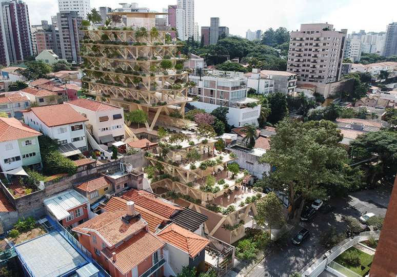 Outro ponto que costuma ser destacado é a experiência sensorial do morador ou frequentador. "Esse espaço tem outro som, outra acústica, outro cheiro, prazeres que a madeira pode trazer", aponta Carol Bueno, uma das sócias do escritório franco-brasileiro Triptyque, que projetou o Floresta Urbana.