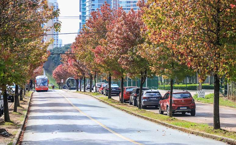Um dos pontos mais tradicionais do outono curitibano já está ganhando cor: conhecida como "Rua do Outono", o trecho que ficou muito conhecido por render fotos bonitas já está quase bem colorido para receber a todos. Mas, como diz a música: "no outono é sempre igual". E realmente: a Prefeitura de Curitiba voltou a fazer um alerta, que tem feito todos os anos, para os cuidados com o fluxo de veículos, principalmente de biarticulados.
