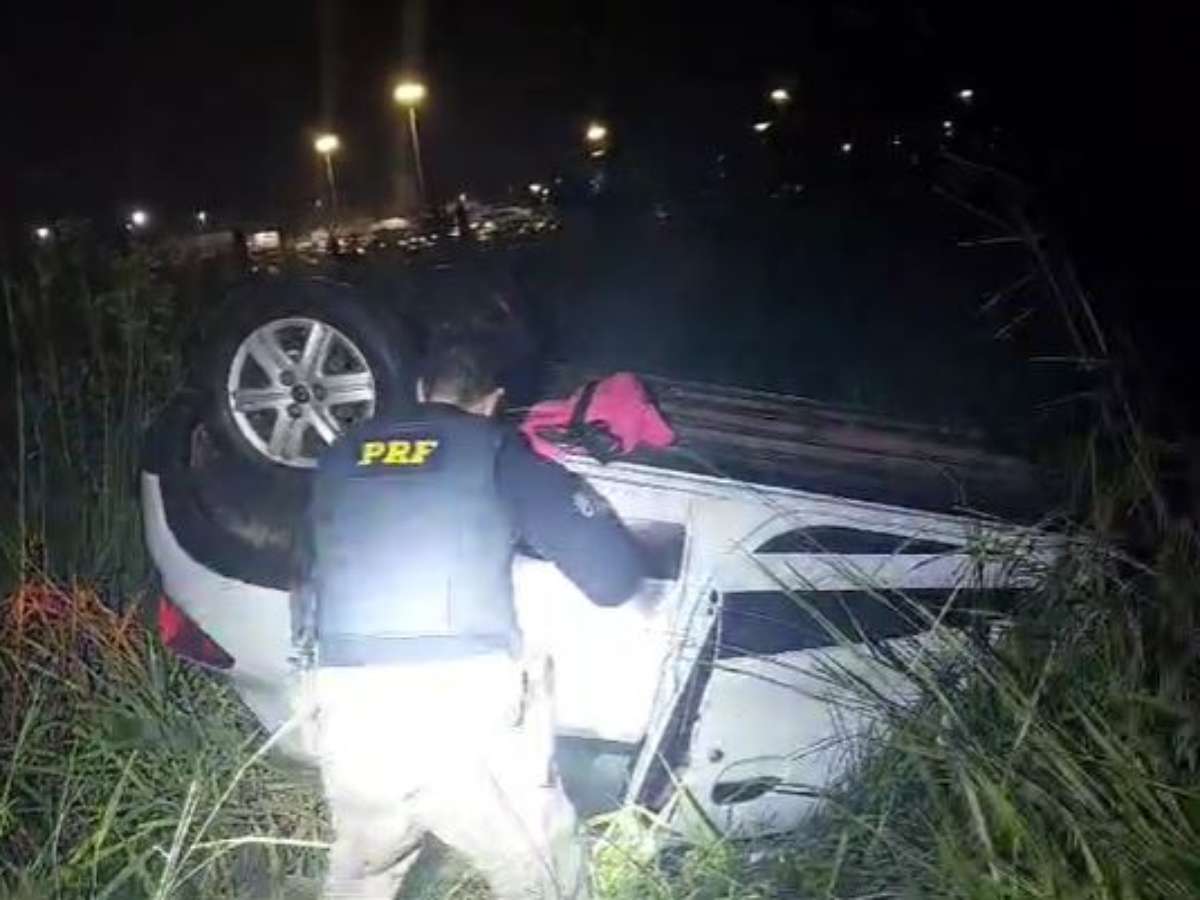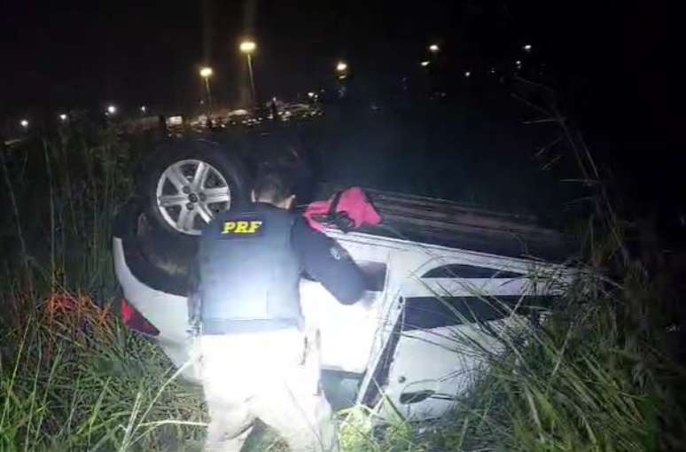 Após uma perseguição de aproximadamente 4 quilômetros, a motorista perdeu o controle do veículo, saiu da pista e capotou.