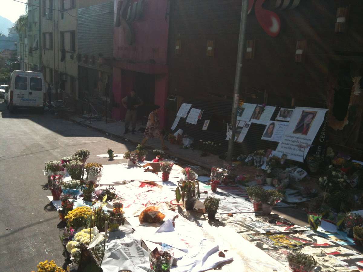 Desde o incêndio, parentes de vítimas depositam diariamente flores em frente à Boate Kiss, como em uma espécie de santuário, onde as famílias expõem toda sua revolta com a perda de entes próximos.