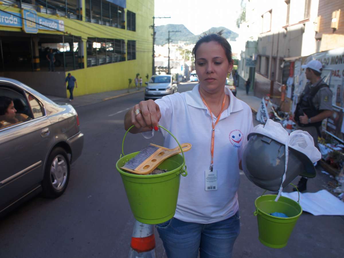 26 de março - Servidores do Centro de Referência em Saúde do Trabalhador (Cerest) de Santa Maria retiraram da boate cerca de um quilo de poeira e fuligem do interior da boate Kiss. O material será analisado para que se descubra quais os produtos tóxicos que há nesses resíduosFoto: Luiz Roese / Especial para Terra
