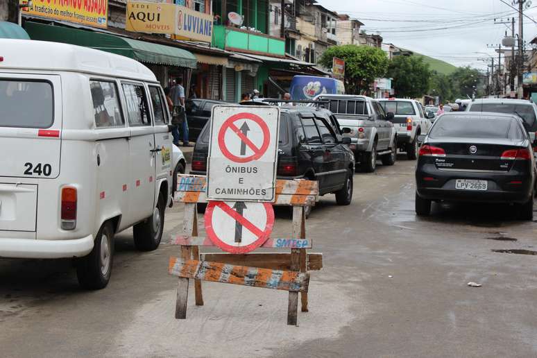 Em Xerém, o trânsito era caótico após a chuva que provocou estragos no distrito