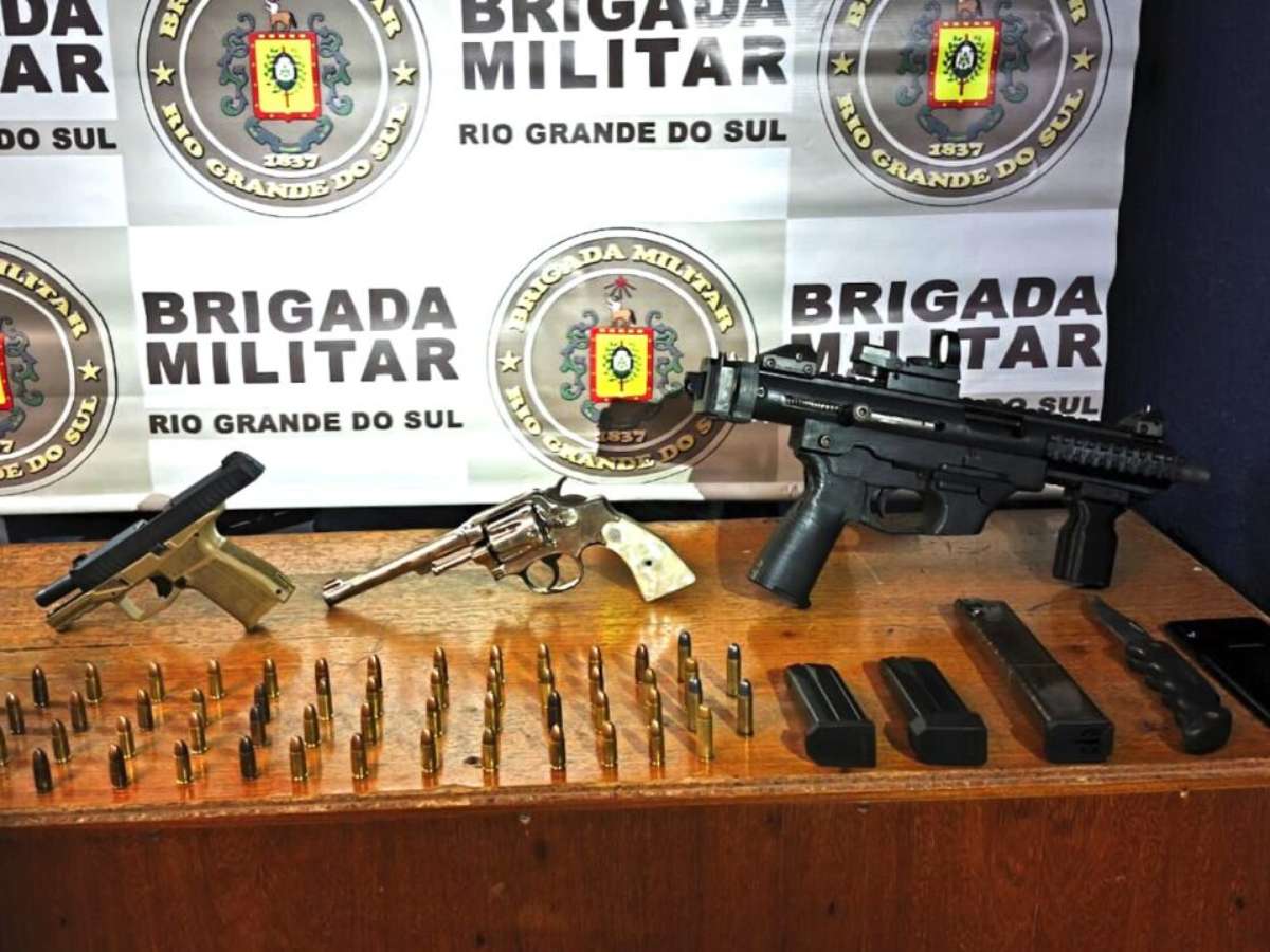 Ação rápida da Brigada Militar termina com apreensão de armas e captura de criminosos.