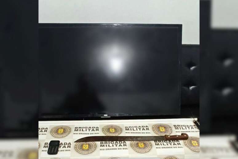 A Brigada Militar realizou buscas nas proximidades e avistou um dos suspeitos, um jovem de 21 anos, segurando um facão sujo de sangue, entrando em uma residência.