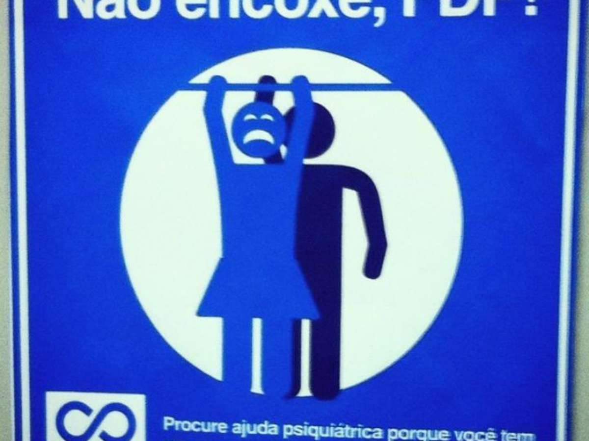 "Não encoxe, FDP! Procure ajuda psiquiátrica porque você tem um grave problema mental. Se não resolver, castração física é uma ótima alternativa! (sic)", dizia o adesivo encontrado na CPTM no começo do dia.