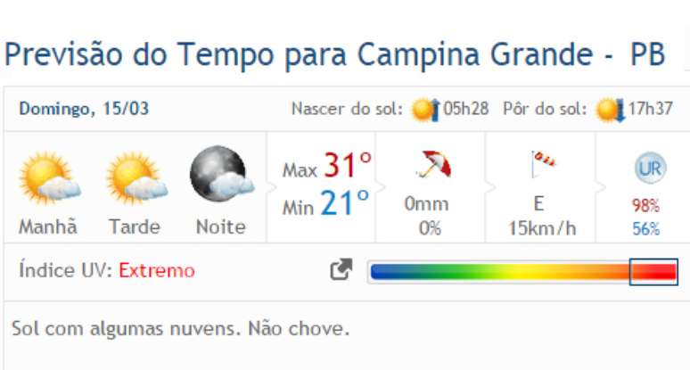 Veja a previsão completa par a Paraíba