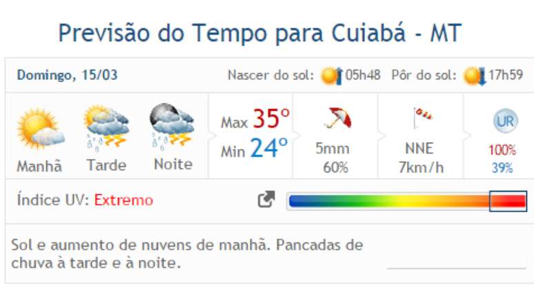 Veja a previsão completa par as demais cidades do Mato Grosso