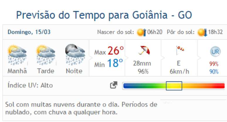 Veja a previsão completa para as demais cidades de Goiás