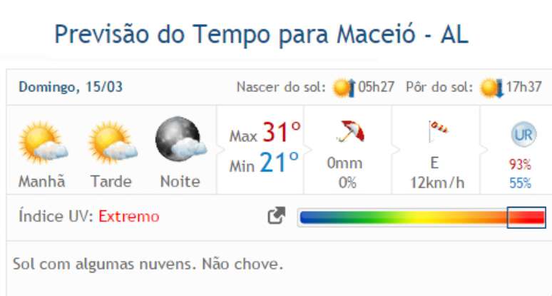 Veja a previsão completa para as demais cidades de Alagoas