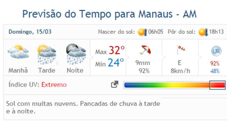Veja a previsão completa para das demais cidades do Amazonas
