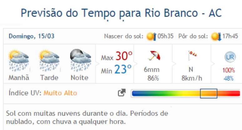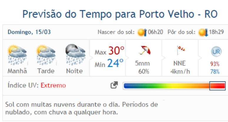 Veja a previsão completa para as demais cidades de Rondônia